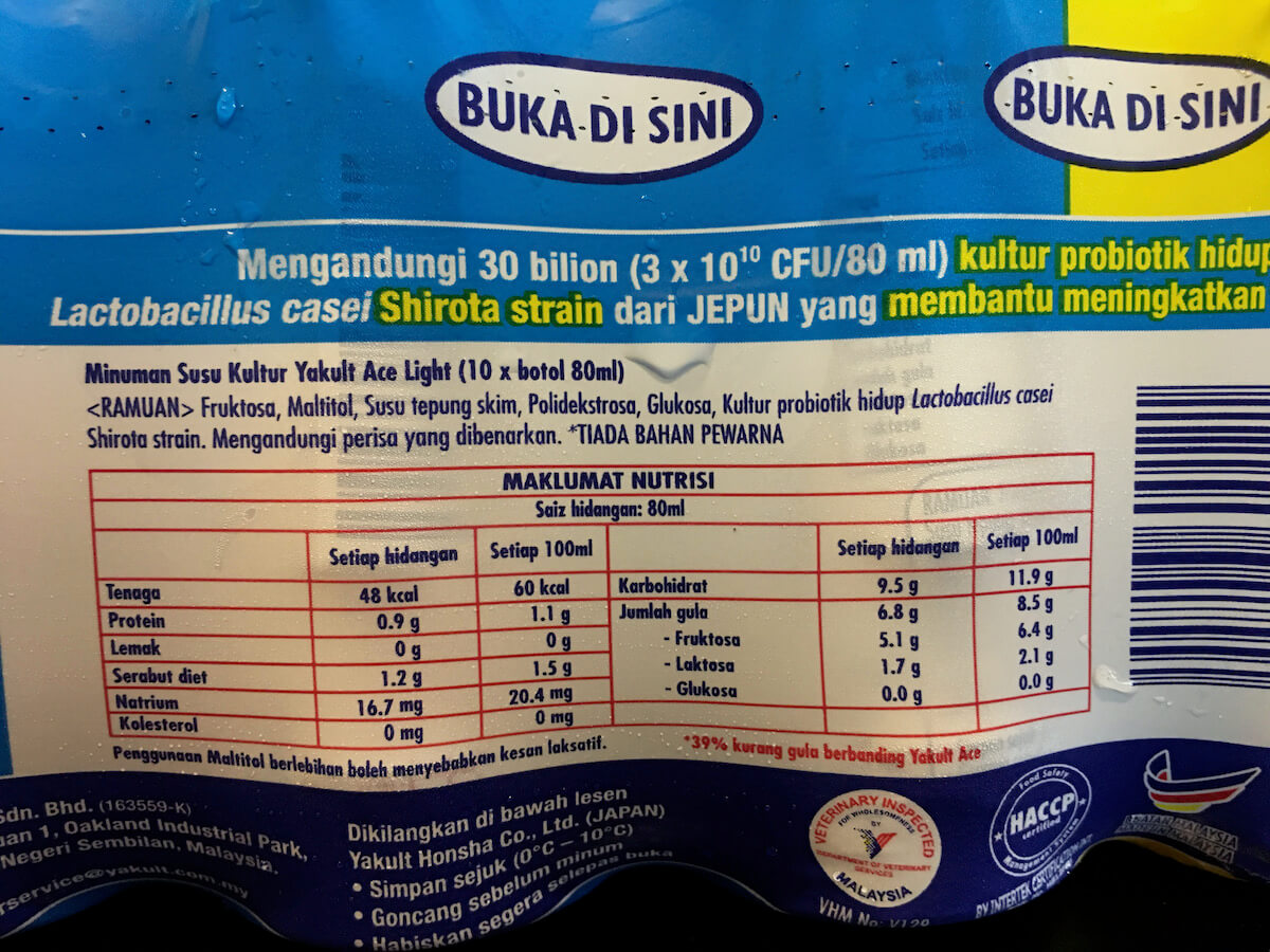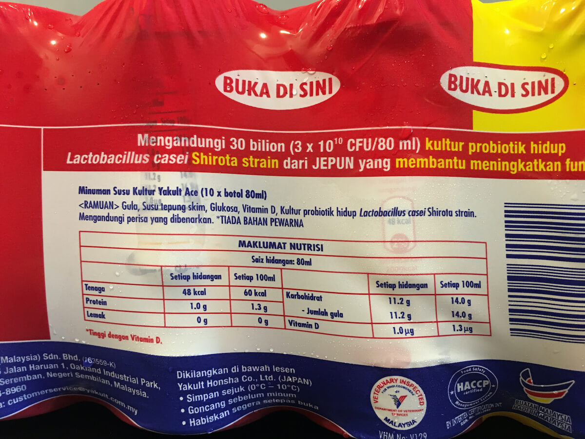ヤクルトは、食品の安全品質管理を担うマレーシア保健省から正式に認定されたプロバイオティクス飲料であり、同記事執筆時点で認定を受けていたプロバイオティクス飲料はヤクルトを含めてたったの2社だとか。その他多くのマレーシア国内で販売されている乳酸菌飲料は認定を受けていません。